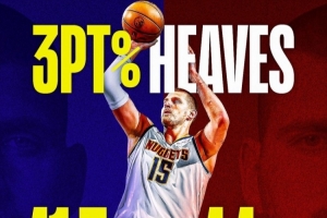 节末压哨不中不计入个人投篮!照此算约基奇上赛季三分命中率为44%