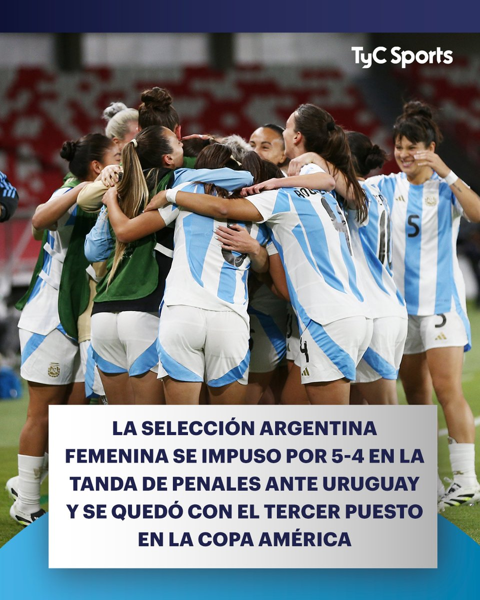 8月2日讯 今日上午,女子美洲杯季军争夺战,阿根廷点球大战5-4击败乌拉圭,最终获得第三名。